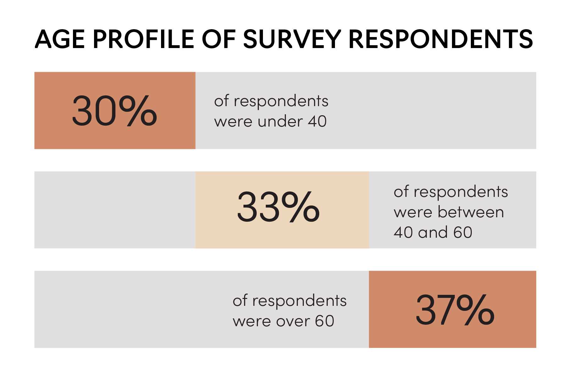 As shown in the diagram below we also had an even spread across our age groups with 30% of our survey respondents were aged under 40, 33% aged 40-60 and 37% aged 60+.